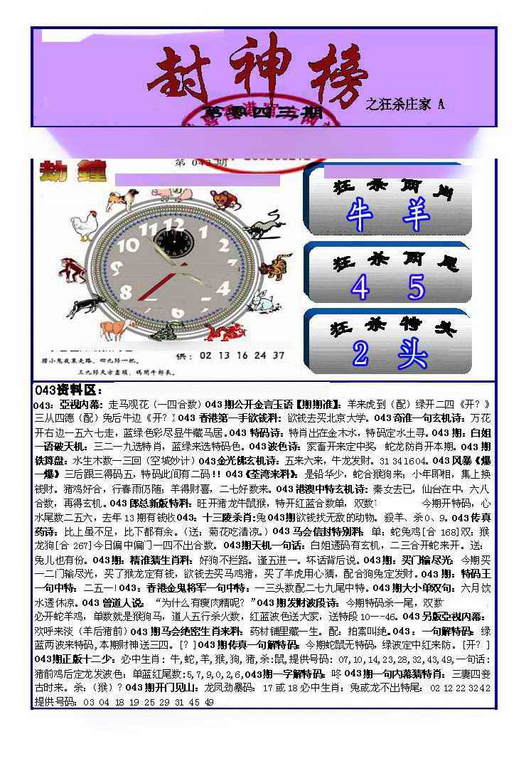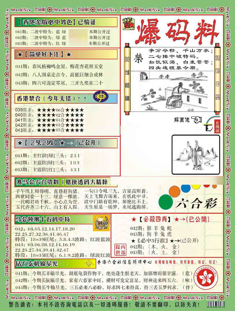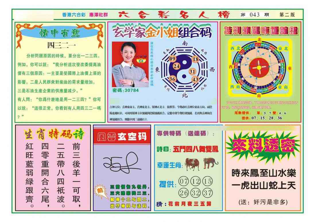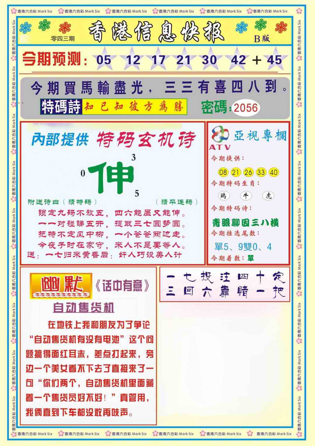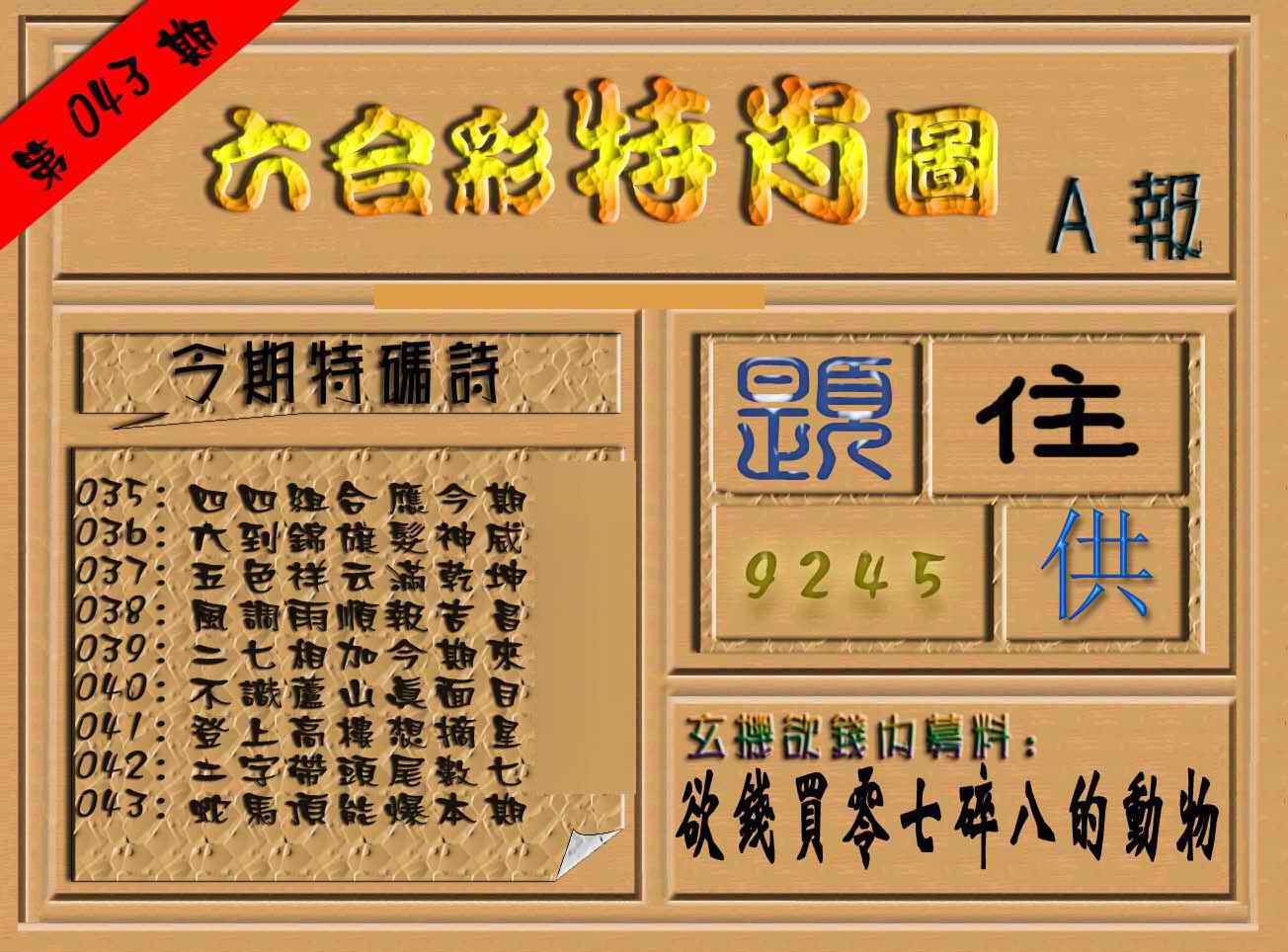 063 六合禅机A 064 六合禅机B 069 特 新 报A 070 特 新 报B