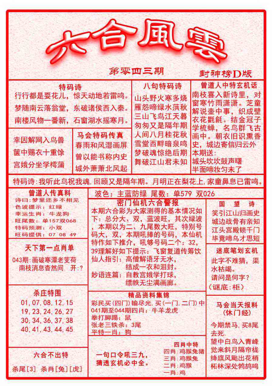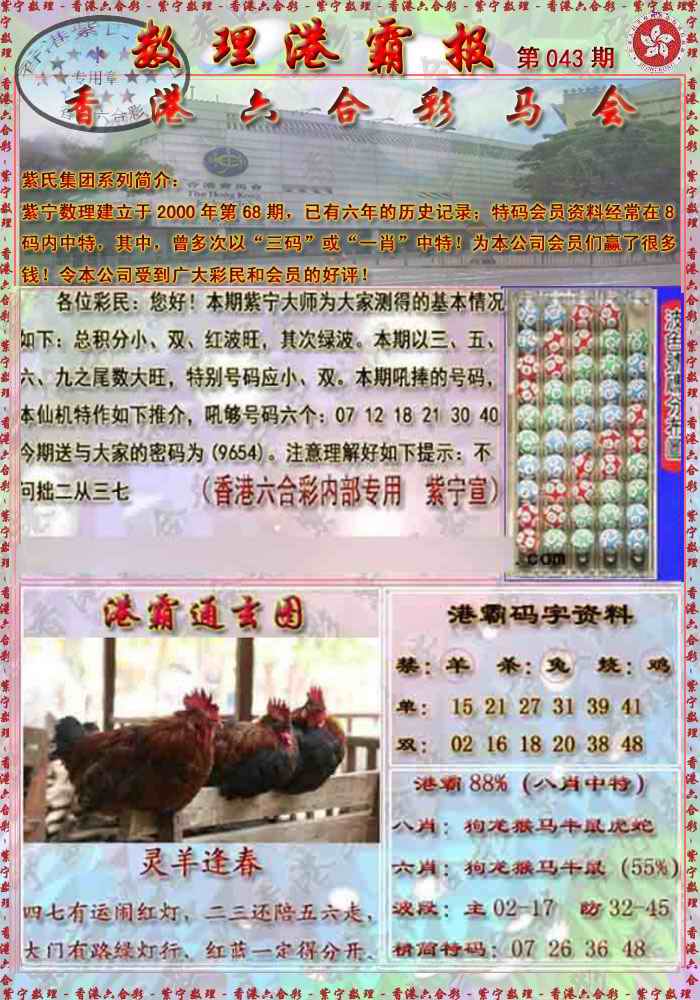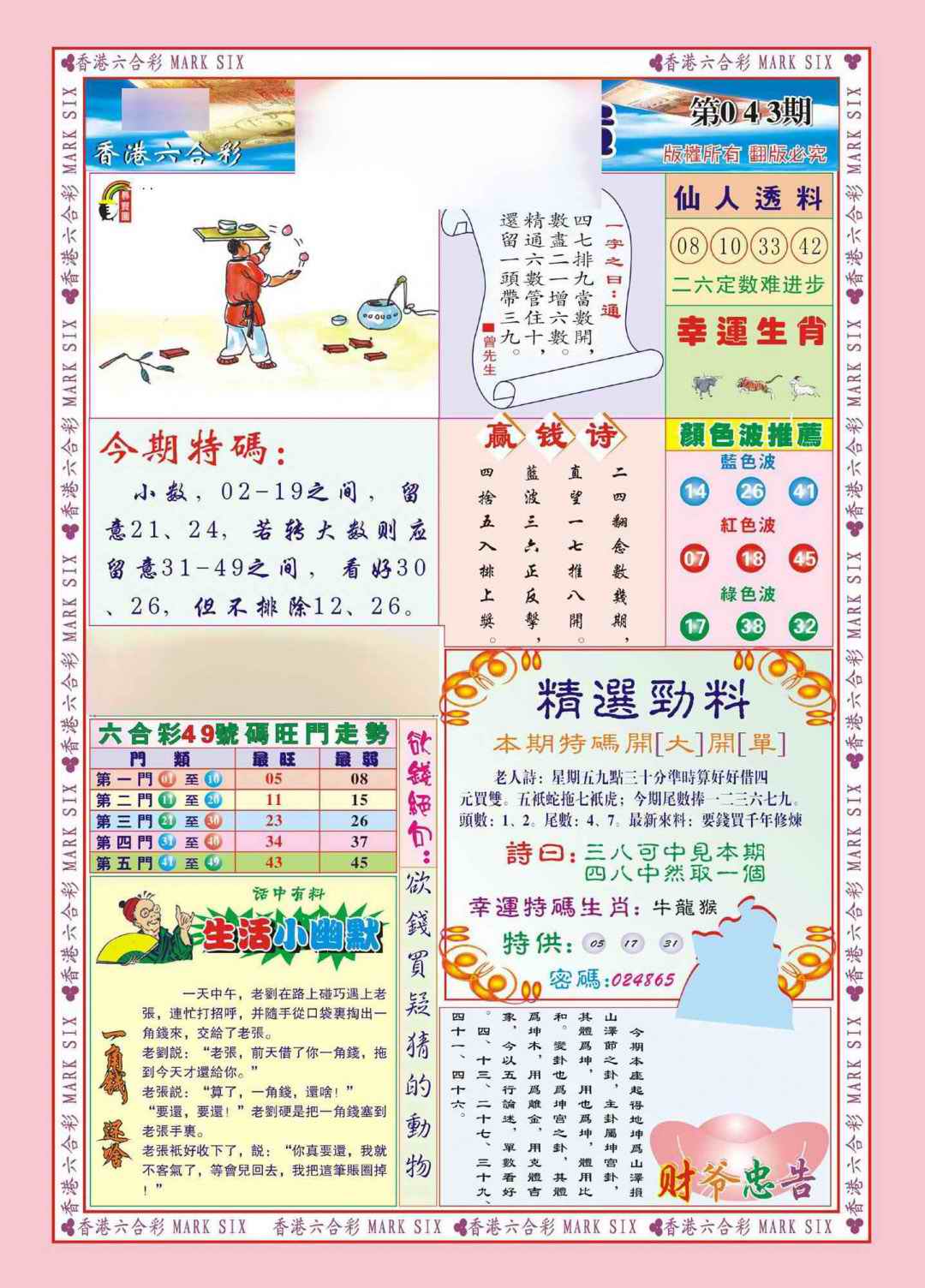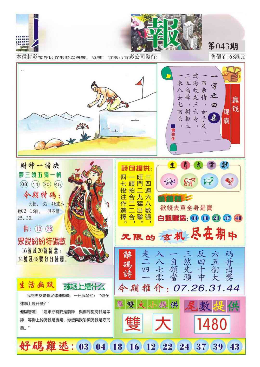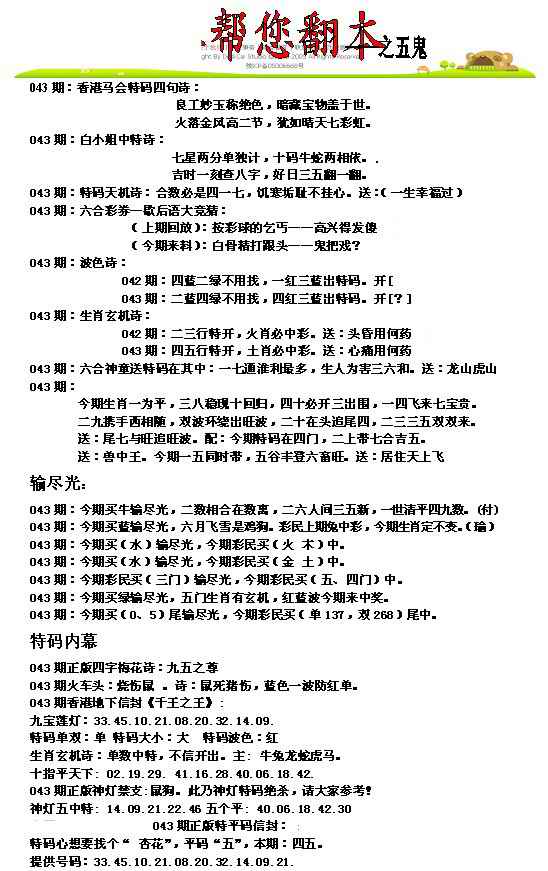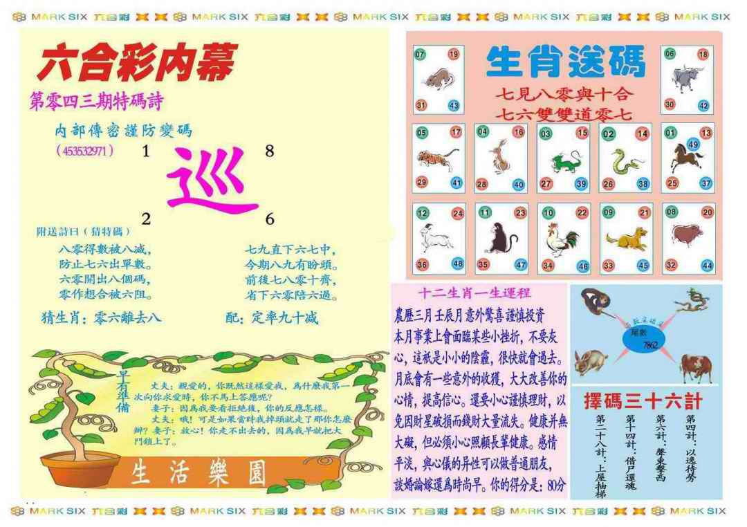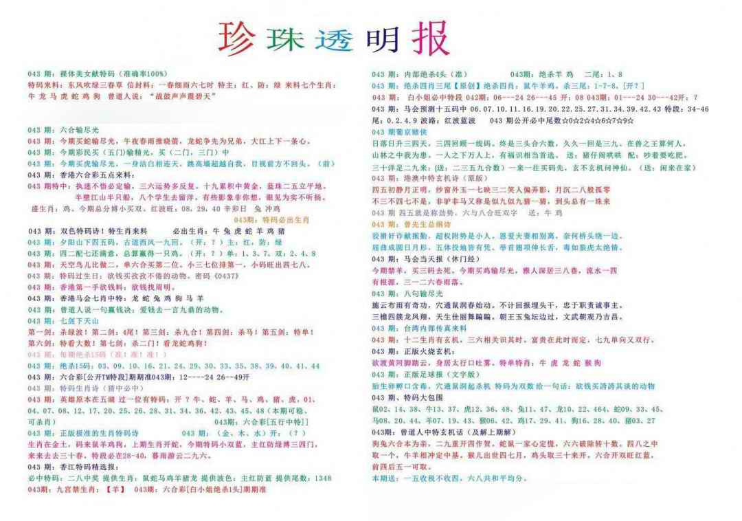 063 六合禅机A 064 六合禅机B 069 特 新 报A 070 特 新 报B
