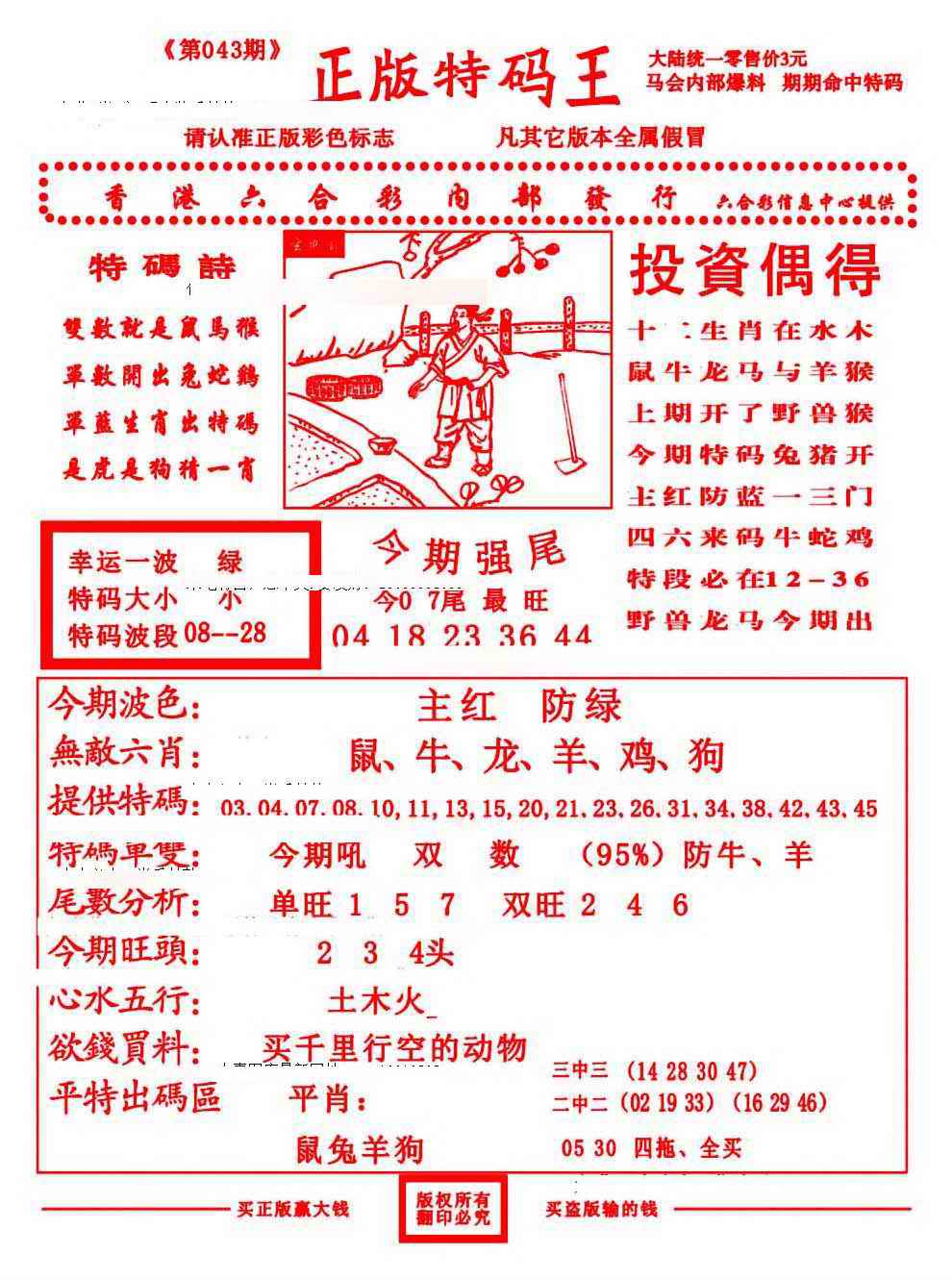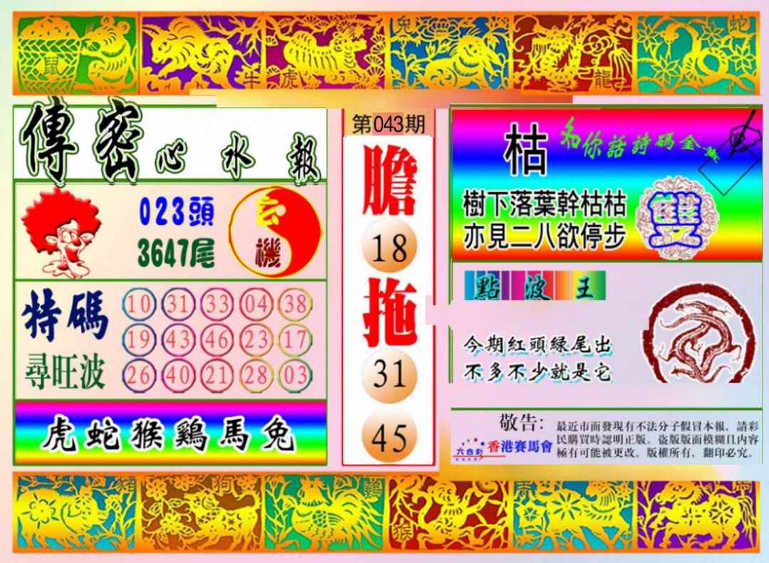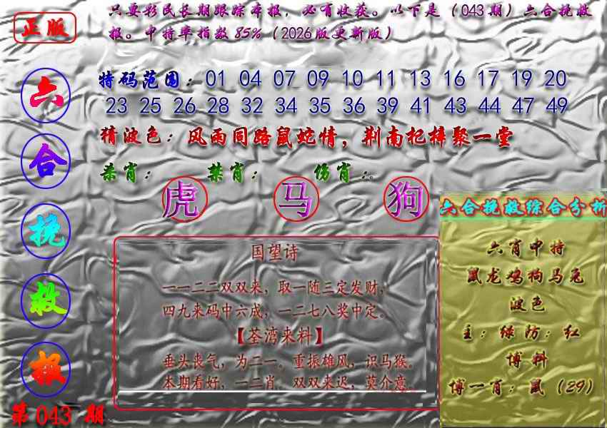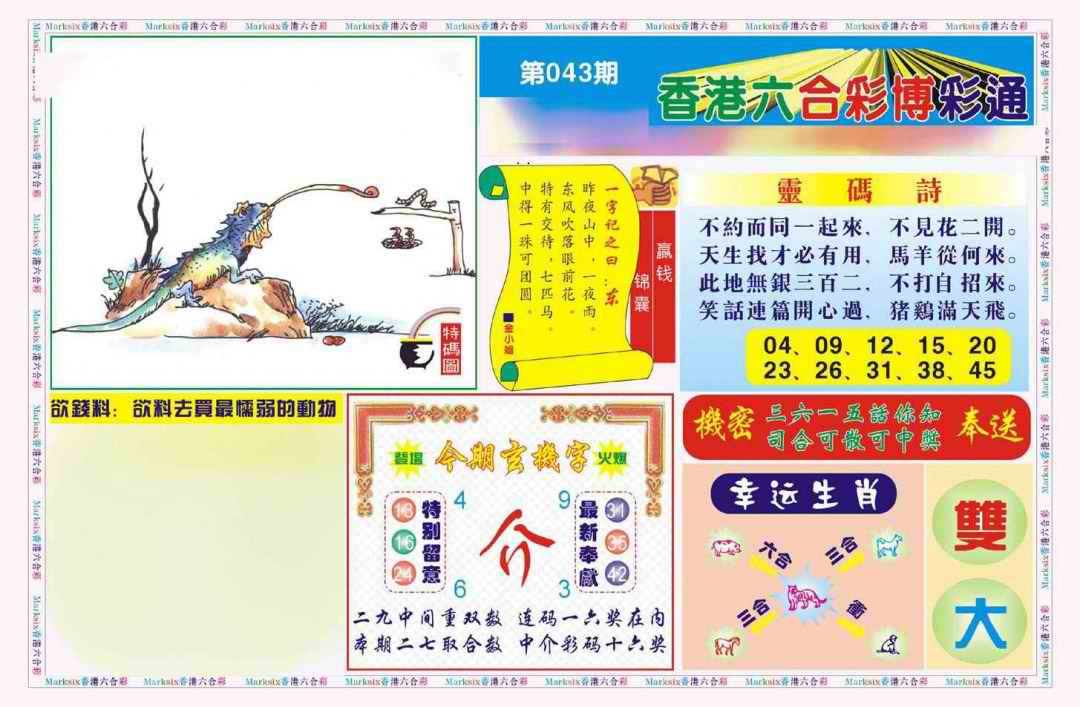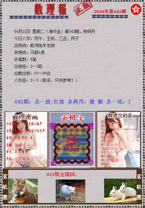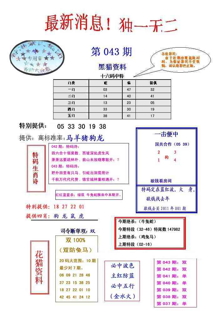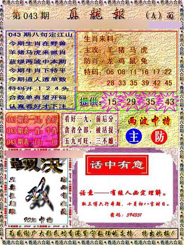 063 六合禅机A 064 六合禅机B 069 特 新 报A 070 特 新 报B