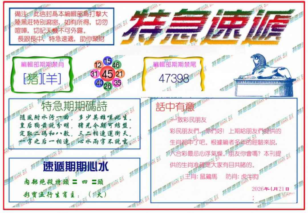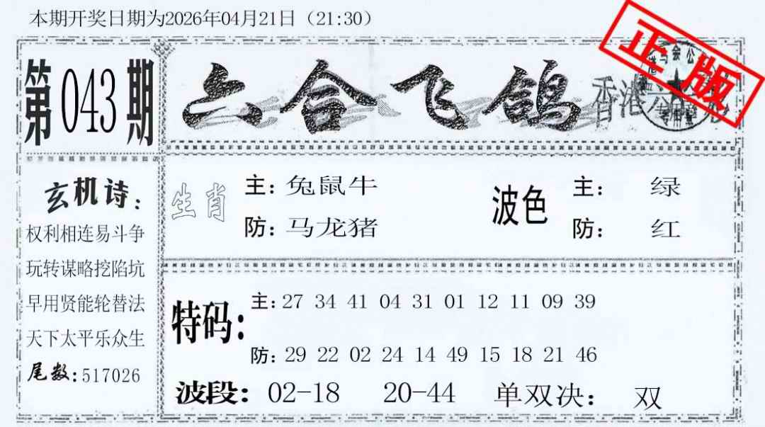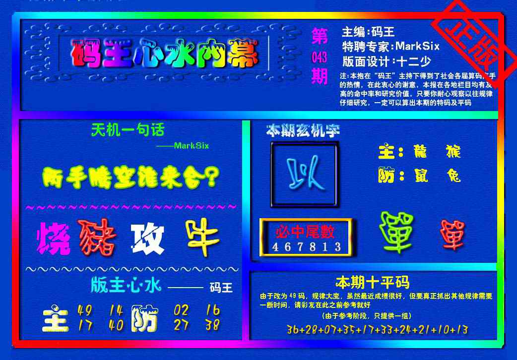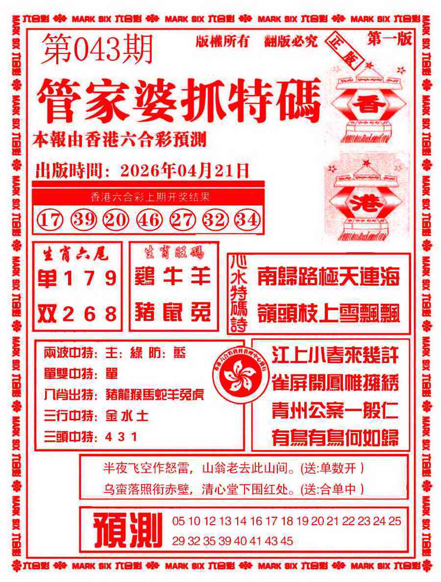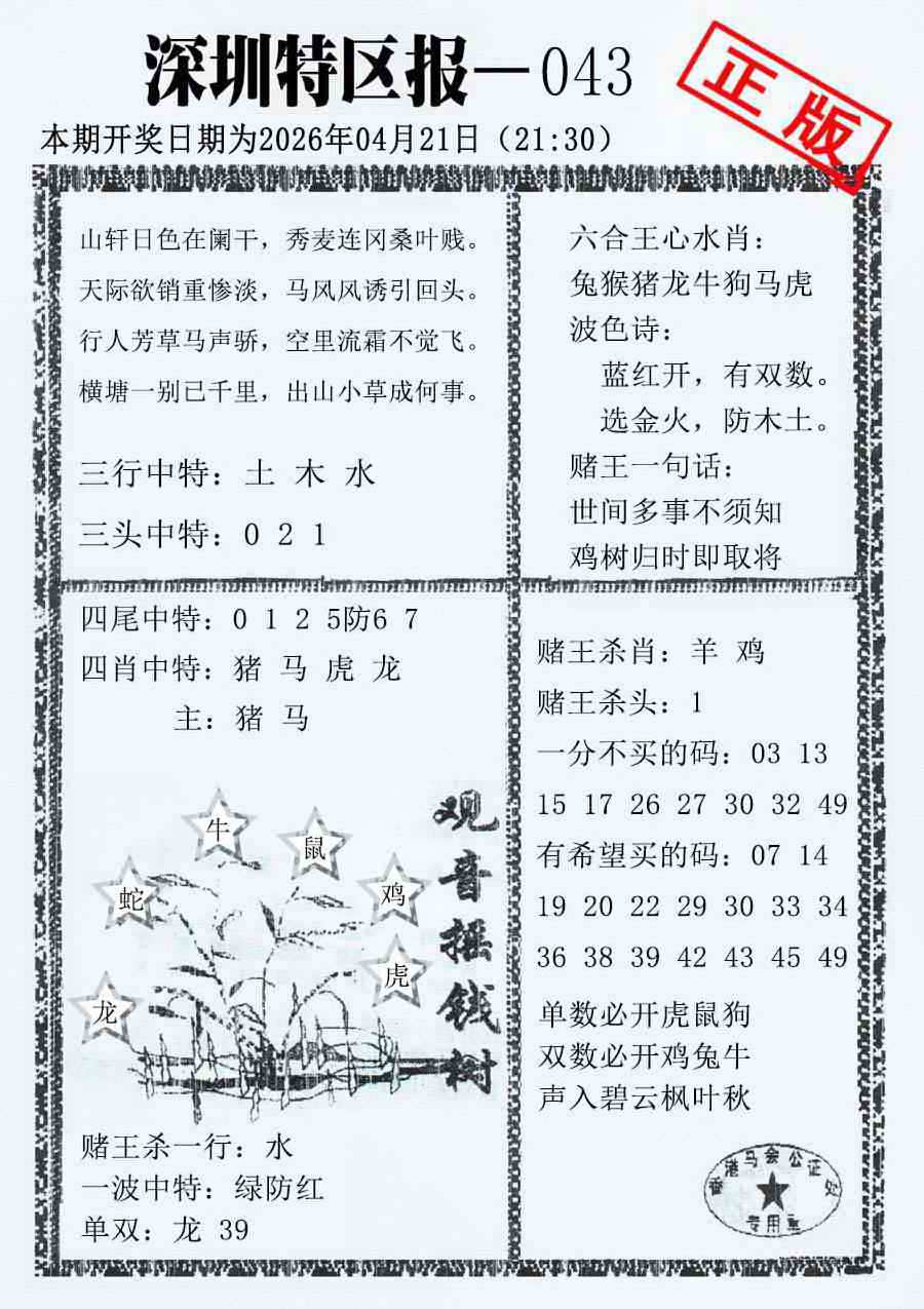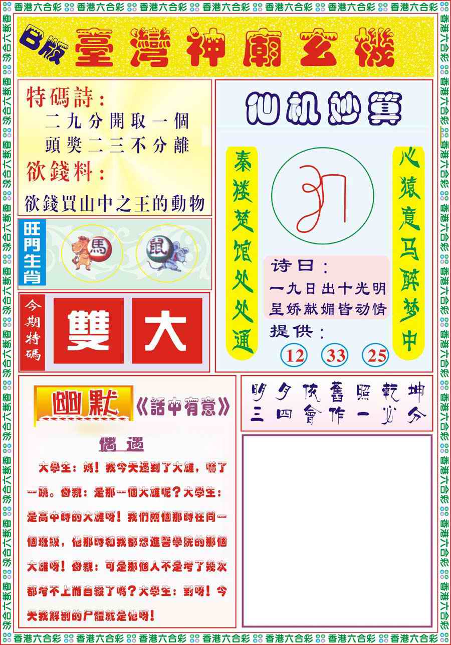 063 六合禅机A 064 六合禅机B 069 特 新 报A 070 特 新 报B