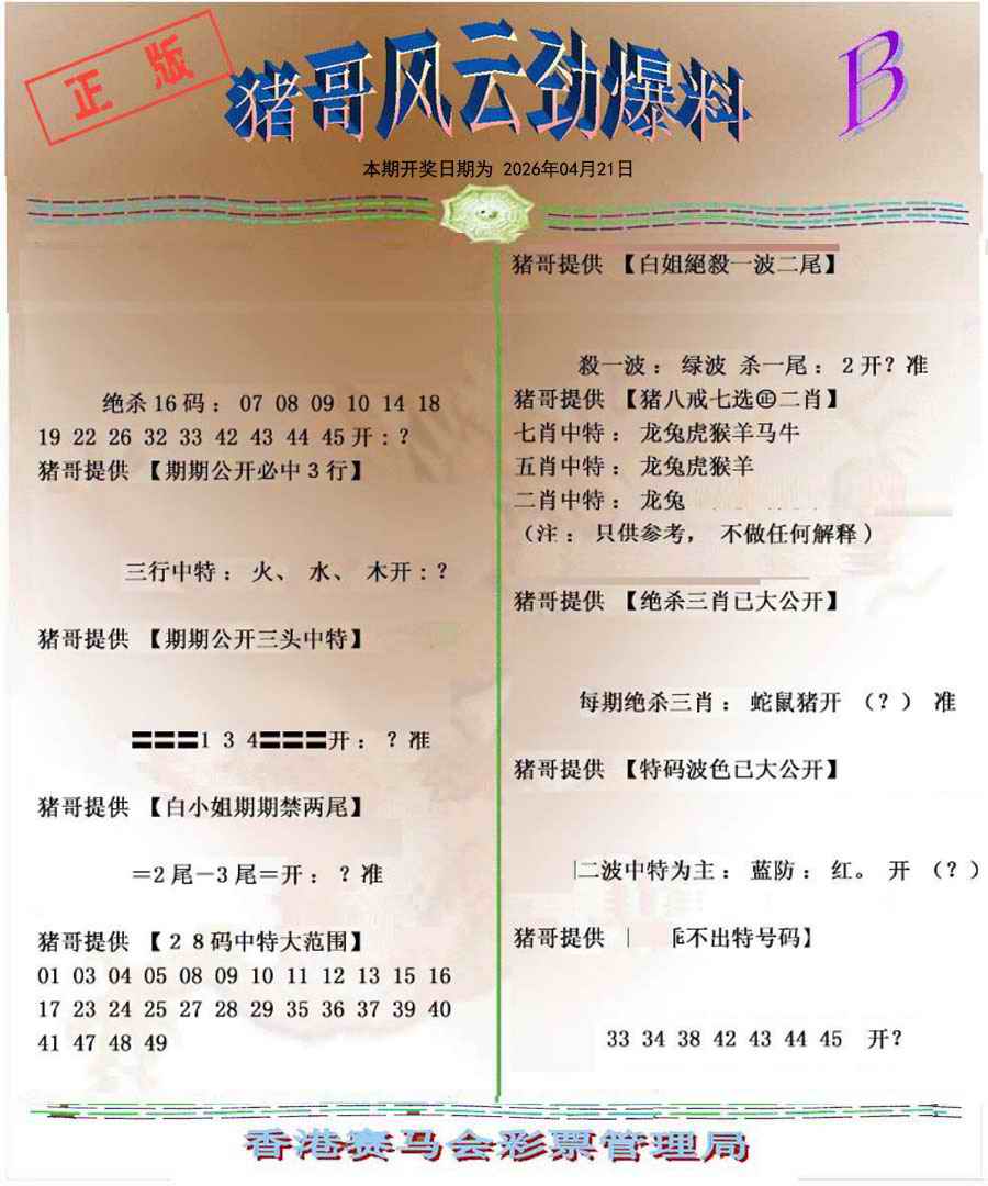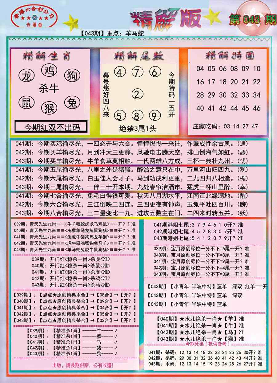 441 六合解霸A 442 六合解霸B 445 白姐特新刊A 446 白姐特新刊B