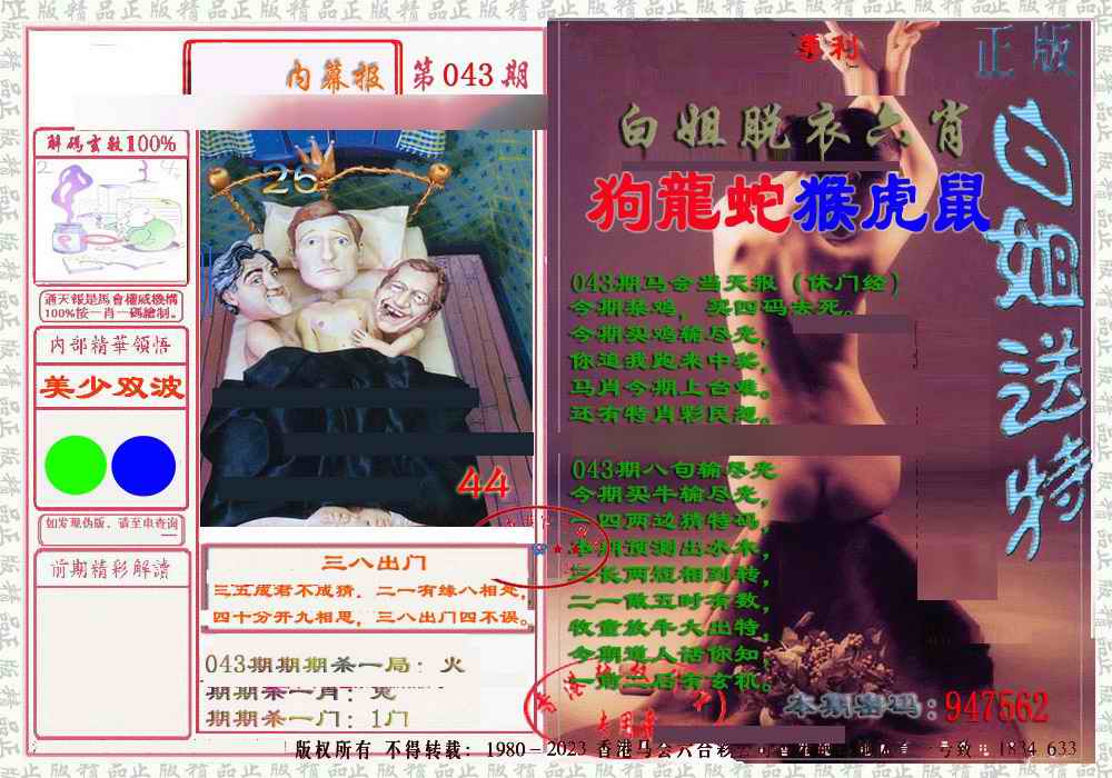 1581 精准传真报 1582 新天线宝宝内幕报 1583 当期狗仔版 1585 白姐泄密