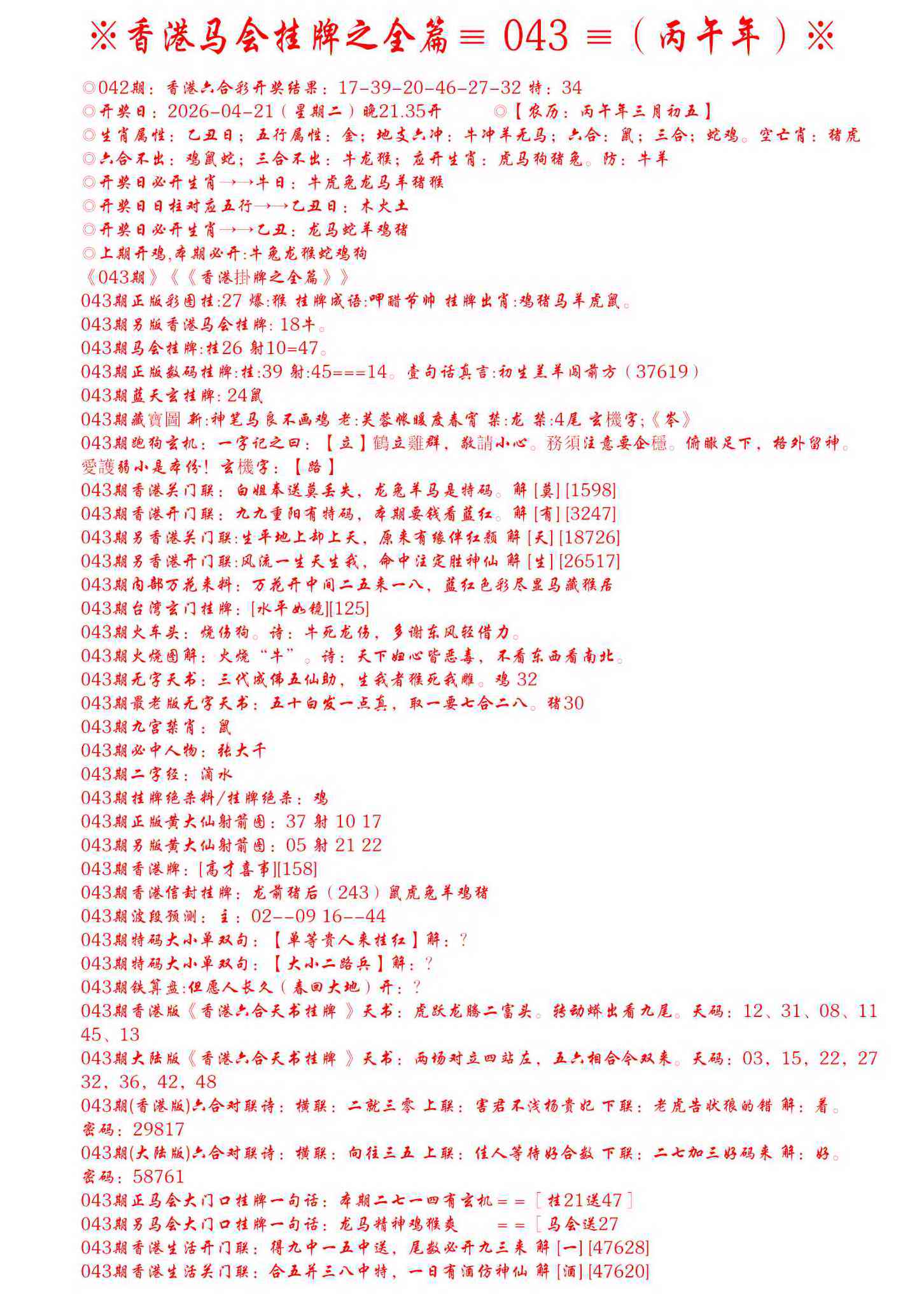 039 六合内部玄机A 040 六合内部玄机B 041 内部精选神算通A 042 内部精选神算通B