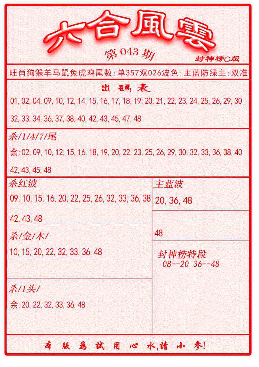 1460 封神榜B 1461 六合风云A 1462 六合风云B 1463 曾道人内幕泄密