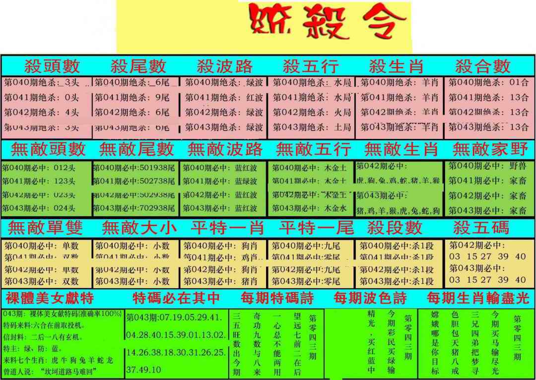 1659 一点红 1660 马经平特图 1661 杀杀杀A 1662 杀杀杀B