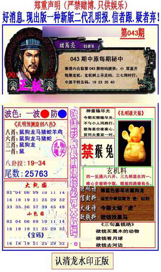 1655 另二代凤凰报 1656 凤凰内幕报 1657 一代孔明报 1658 二代孔明报